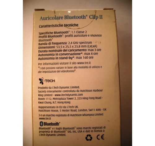 AURICOLARE VINTAGE BLUETOOTH 1.1 CLASSE 2/ORIGINALE TRE 3
