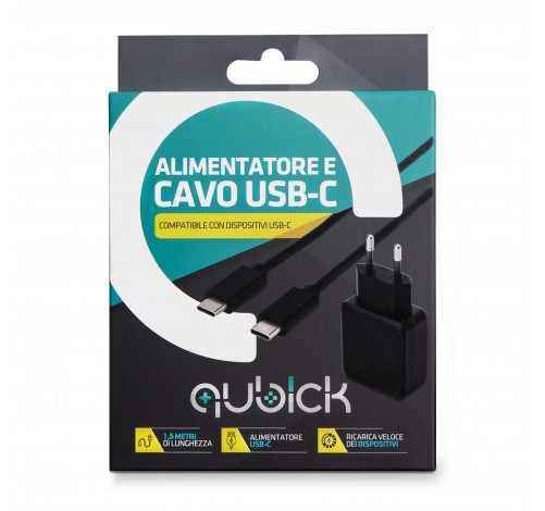 Alimentatore con uscita USB-C e cavo con connettori USB-C e USB-C 2.0. Ideale per caricare e alimentare dispositivi con porta USB-C e per sincronizzare dati, foto e musica. Il connettore del cavo è reversibile: può essere inserito facilmente in qualsiasi dispositivo dotato di porta di tipo C, indipendentemente dal verso.