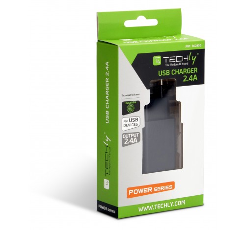 - 1x IPW-USB-24BK Caricatore alimentatore USB-A da muro 5V 2.4A per smartphone o tablet