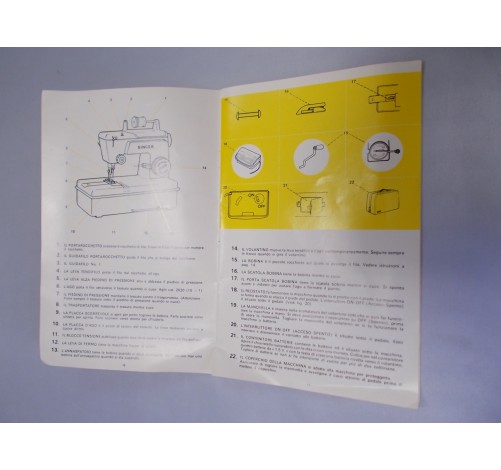 Libretto in ottime condizioni, n. 28 pagine complete, illustrato e descritto, copertina con stampe colorate e indicazioni per istruzioni in piu' lingue + logo SINGER ORIGINALE
