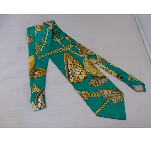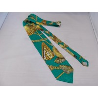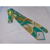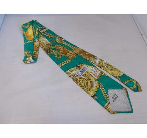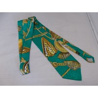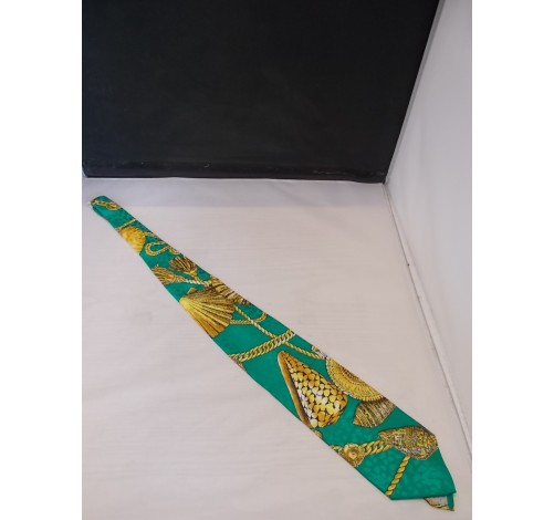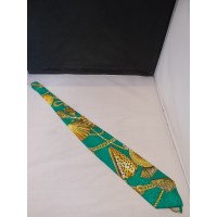 Cravatta "Vintage" Gianni Versace anni "90 in seta verde con stampa barocca gialla e nera