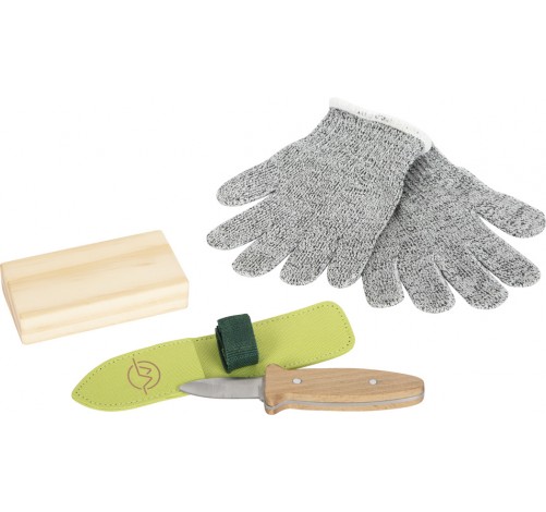 - Incl. coltello, fodero, blocco da intaglio e appositi guanti per bambini