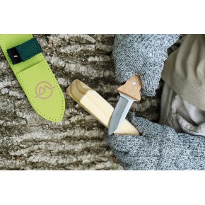 Con questo coltello da intaglio, anche i bambini potranno adottare un approccio pratico durante la prossima passeggiata nel bosco. La lama del coltello è affilata da un solo lato, perché le lame completamente smussate non sono affatto più sicure! Le lame smussate richiedono, infatti, una maggiore forza in fase di taglio e intaglio, aumentando così notevolmente il pericolo che il coltello scivoli e il bambino si faccia male. In ogni caso, i coltelli da intaglio per bambini vanno sempre utilizzati sotto la supervisione di un adulto e devono rispettare regole precise. I coltelli non sono giocattoli, bensì "strumenti da lavoro"! Sono ideali per passeggiate nella natura, avventure e spedizioni, perché con la giusta attrezzatura da esploratori il mondo fuori casa diventa un luogo ricco di emozionanti avventure!