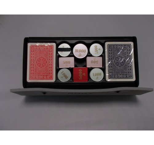 Il set include : n.2 mazzi di carte pocker (rosso e blu) sigillate + fiches