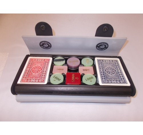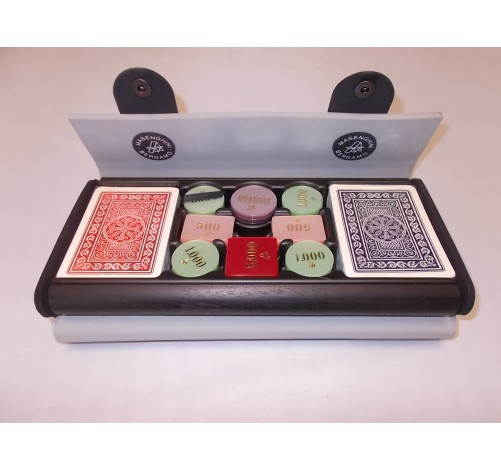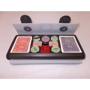 Astuccio con scocca esterna in materiale sintetico realizzato con scanellature in monopezzo e chiusura a clip che rende estremamente pratico il trasporto, all'interno è presente un telaio rigido nero per riporre le carte e le fiches.