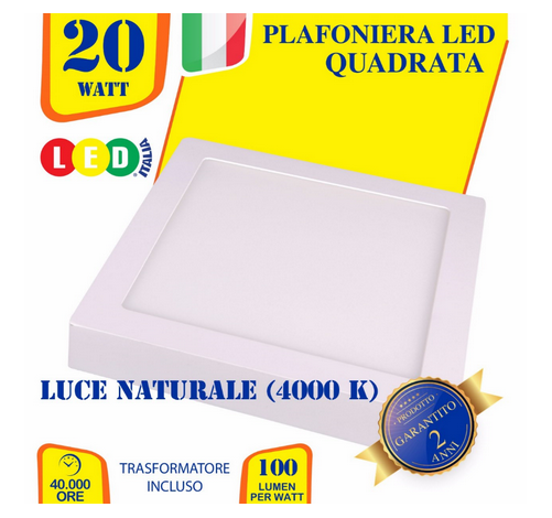 Plafoniera LED quadrata - 20W - 2000lm - 4000K