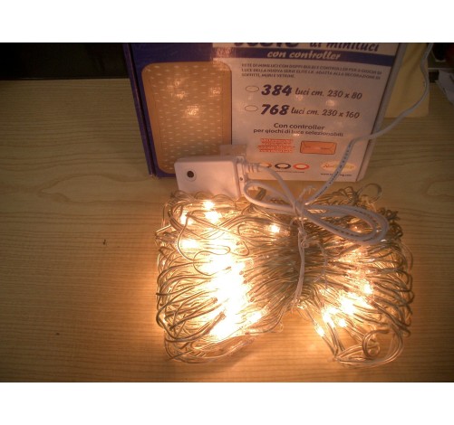 Rete luminosa con minilampade a lunga durata non sostituibili, con dispositivo elettronico/controller con 8 giochi di luce selezionabili