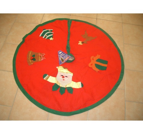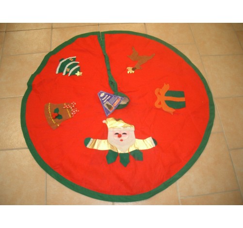 Un tappeto copribase in tessuto decorato del diametro di 110 cm, con comoda apertura a strappo.Adatto a tutti gli alberi di Natale