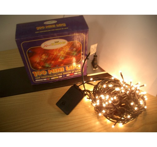 Catena luminosa con mini lampade non sostituibili suddivise in due canali con dispositivo elettronico per 8 giochi di luci