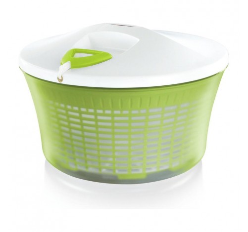 Questo moderno strumento da cucina svolge diverse funzioni allo stesso tempo. La centrifuga per insalata signature di leifheit si utilizza per tre mansioni in caso di necessità. Grazie ad un meccanismo di asciugatura speciale elimina l'acqua in modo particolarmente efficace dall'insalata. Può essere utilizzato come ciotola per l'insalata senza la spina appuntita al centro. Ed infine è dotata di un setaccio che è perfettamente adatto a scolare e sgocciolare gli alimenti, come ad esempio la pasta. Il meccanismo di trazione unico nel suo genere fa ruotare il setaccio a destra e a sinistra asciugando l'insalata in modo delicato ed efficiente. Per le operazioni di pulizia successive è possibile estrarre in modo semplice la piastra girevole sotto al coperchio. Questa caratteristica costituisce un grande vantaggio per l'igiene perché sotto ai dischi fissi si possono depositare rapidamente le particelle dello sporco.
