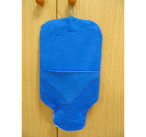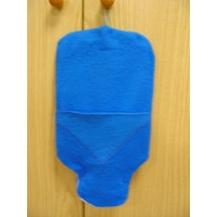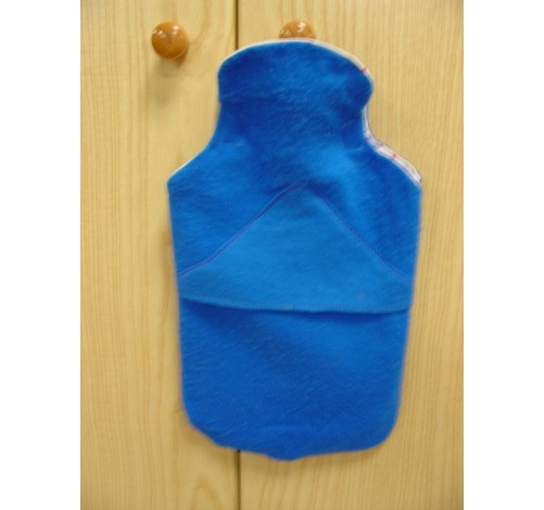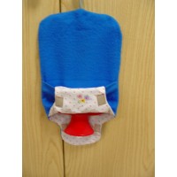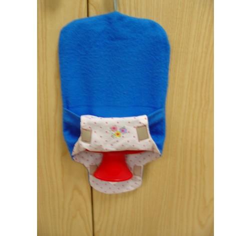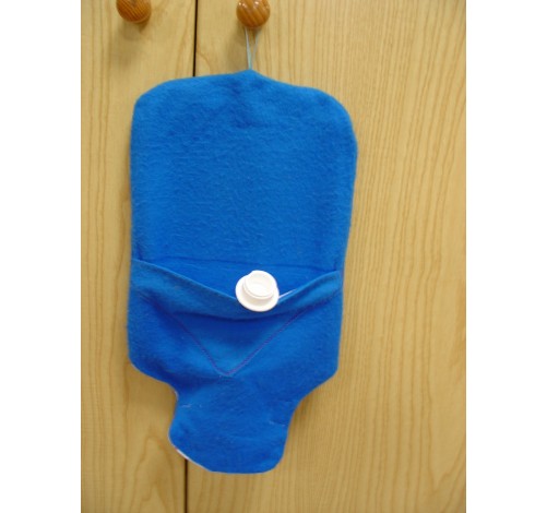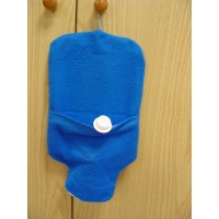 Borsa acqua calda con tappo a vite e gancio per appenderla completa di foderina in tessuto realizzata a mano con tasca per riporre il tappo quando la si svuota e si appende, nella parte inferiore apertura per predisporre il gancio per appendere la borsa.