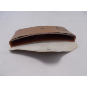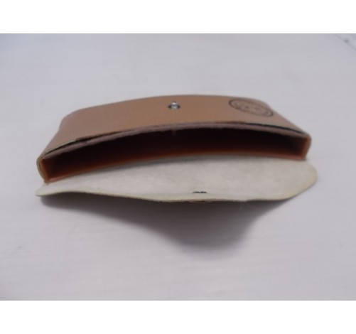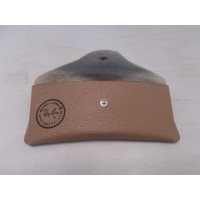Custodia similpelle morbida per occhiali con interno scomparto rigido per occhiale pieghevole, chiusura a clip.